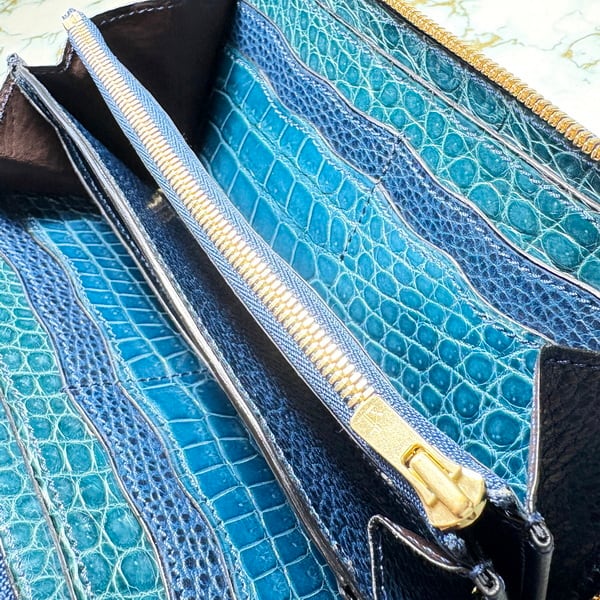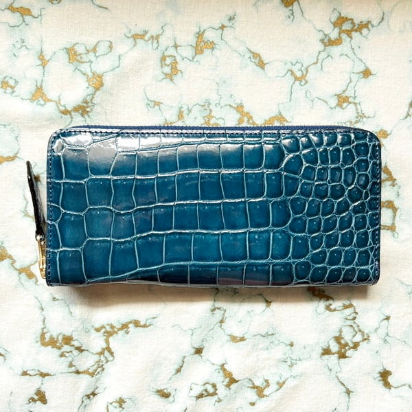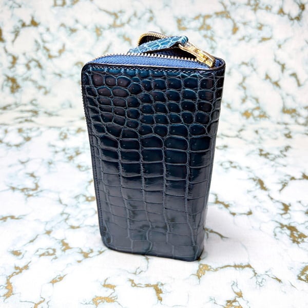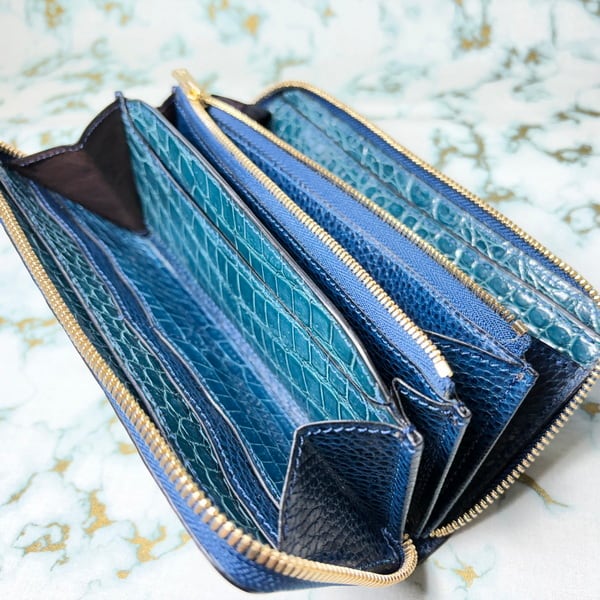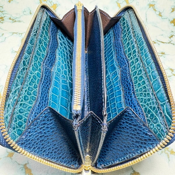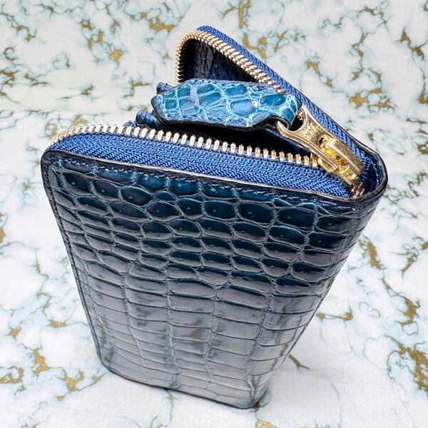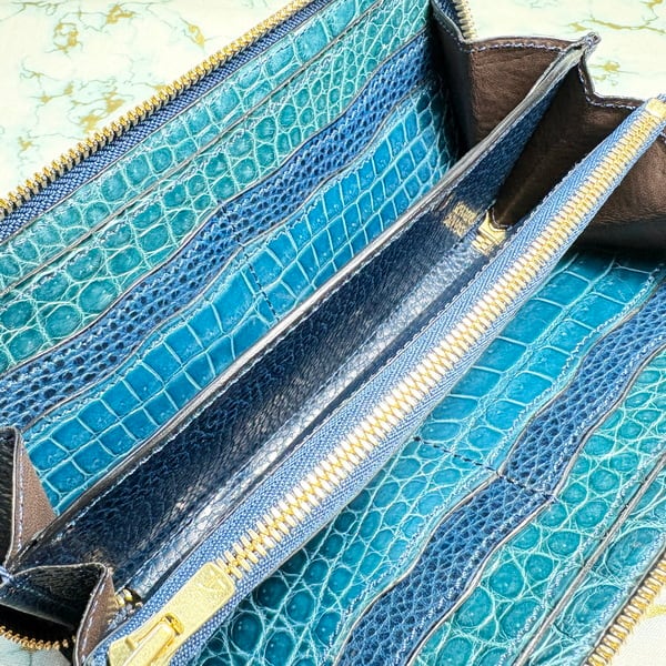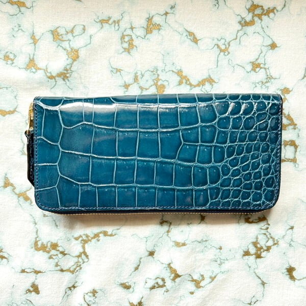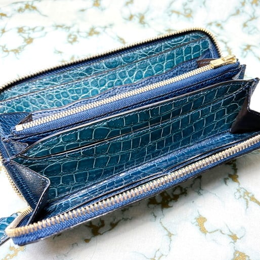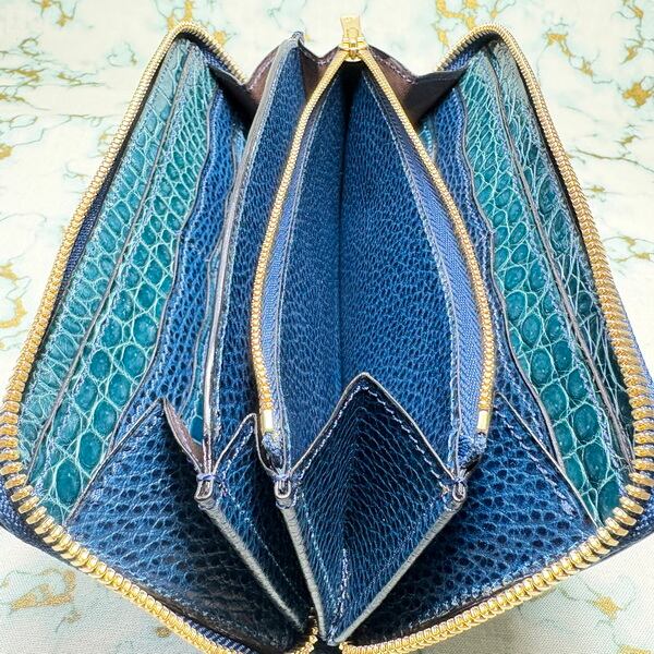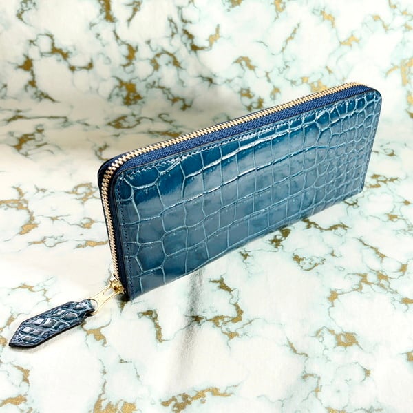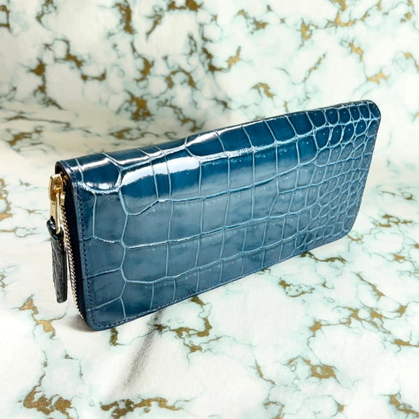 【High class:ポロサス】(鰐革:ブルーカナール)【オイスター】ラウンドファスナーロングウォレット【 black label 】